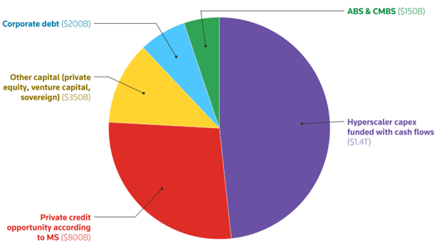 Figure 1: Morgan Stanley (MS) estimates for how the global data centre buildout will be financed (October 2025)